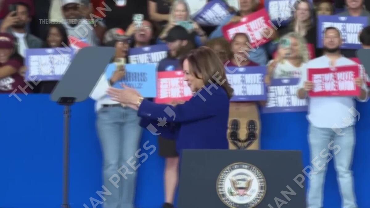 Former Vice President Kamala Harris says it was “recklessness” for Democrats to leave it to President Joe Biden to decide whether to continue seeking another term last year, but she defends his ability to do the job, according to an excerpt of her new book. (AP Production: Marissa Duhaney)