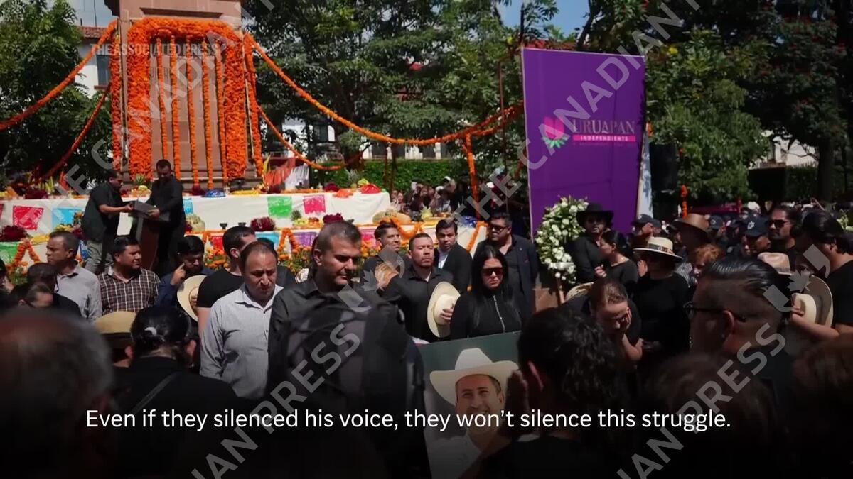 Mourners on Sunday filled the streets of a city in the western Mexican state of Michoacan to pay tribute to its mayor, who was killed during Day of the Dead festivities. (AP video shot by Martín Silva Rey)