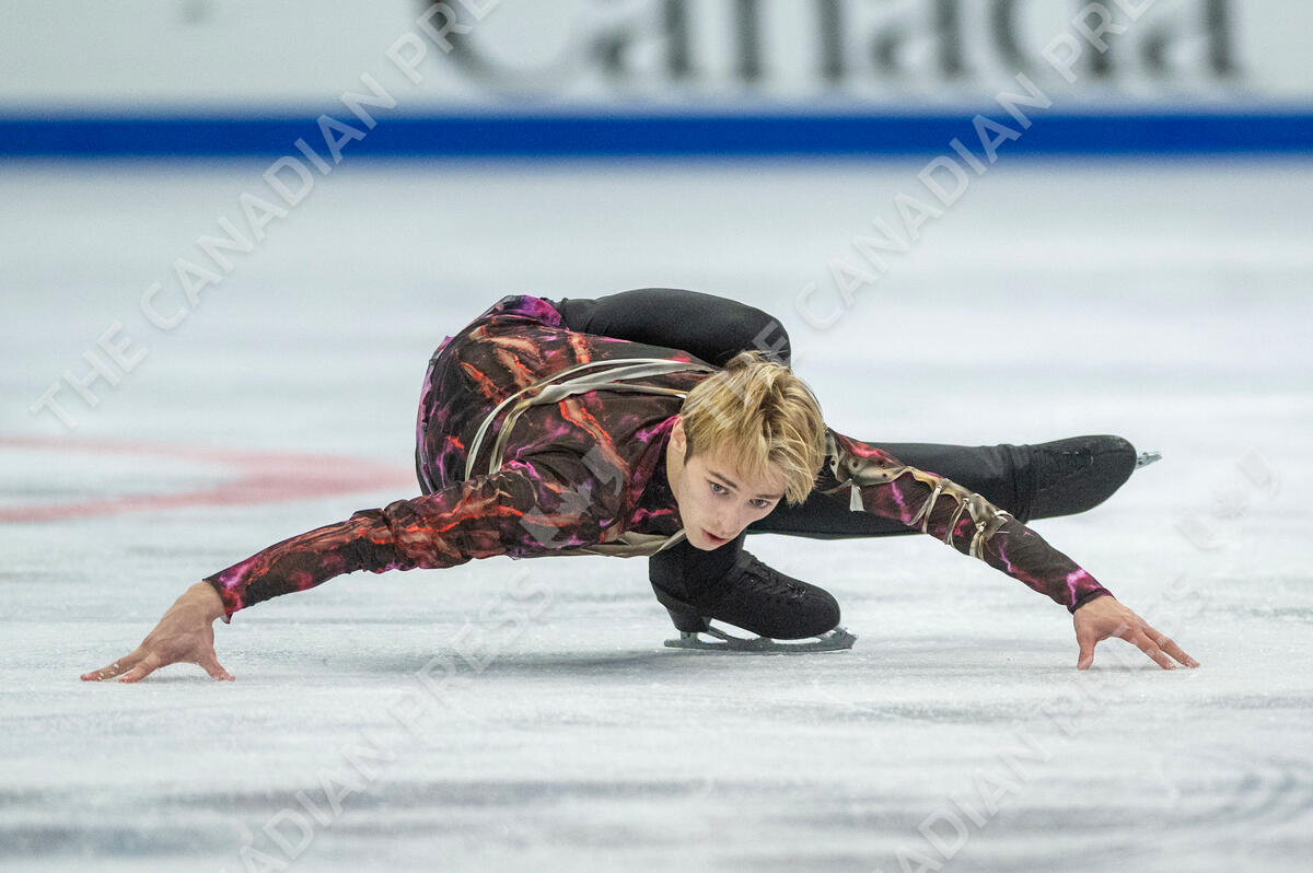 Aleksandr Selevko of Estonia skates in the Men’s free program competition of the 2025 Skate Canada International event in Saskatoon, on Sunday, November 2, 2025. THE CANADIAN PRESS/Liam Richards