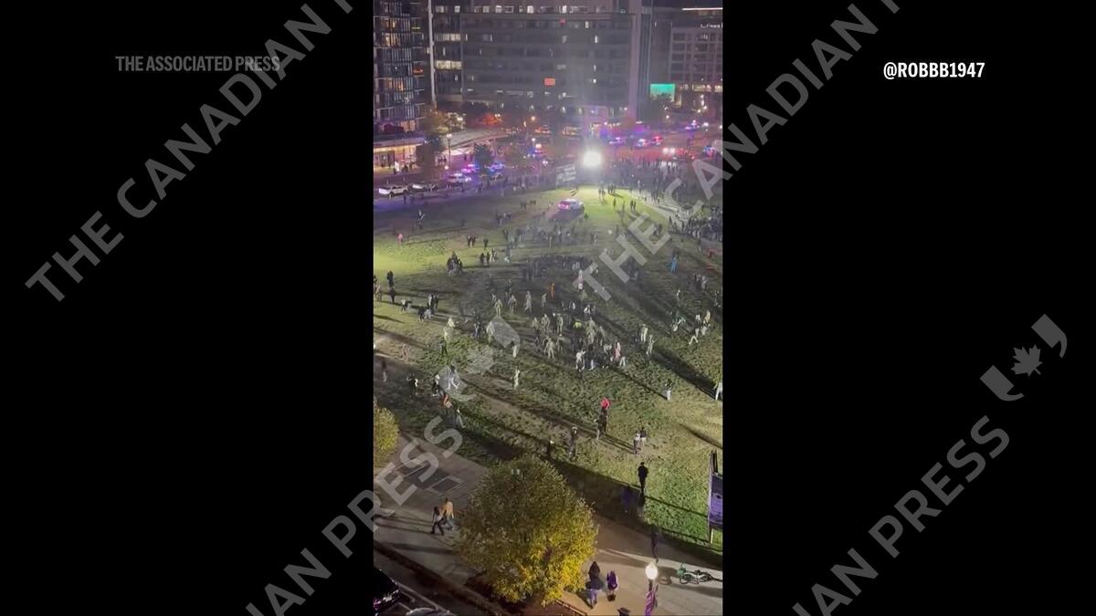 A crowd of young people gathered on Halloween night in Washington’s Navy Yard neighborhood was run out of a park area by police and National Guard members after authorities said some people were engaged in disorderly conduct.