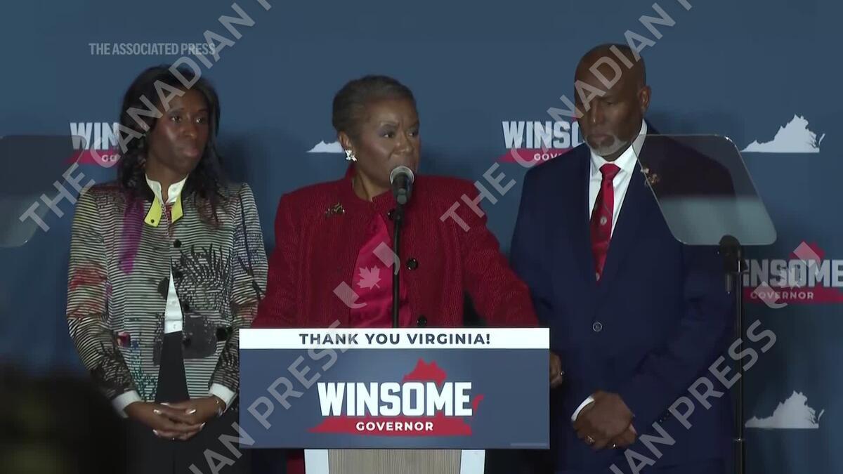 The Lieutenant Governor thanked her supporters and God 'for this journey' and said she's willing to volunteer and help winner Spanberger. (AP Video by Kristin Hall)
