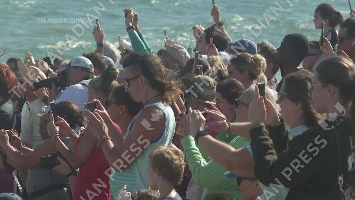 An adult female loggerhead sea turtle named Swim Shady has been released back into the Atlantic Ocean. She was treated at Loggerhead Marinelife Center in Juno Beach, Florida, after suffering injuries from a boat strike. (AP Video/Cody Jackson)