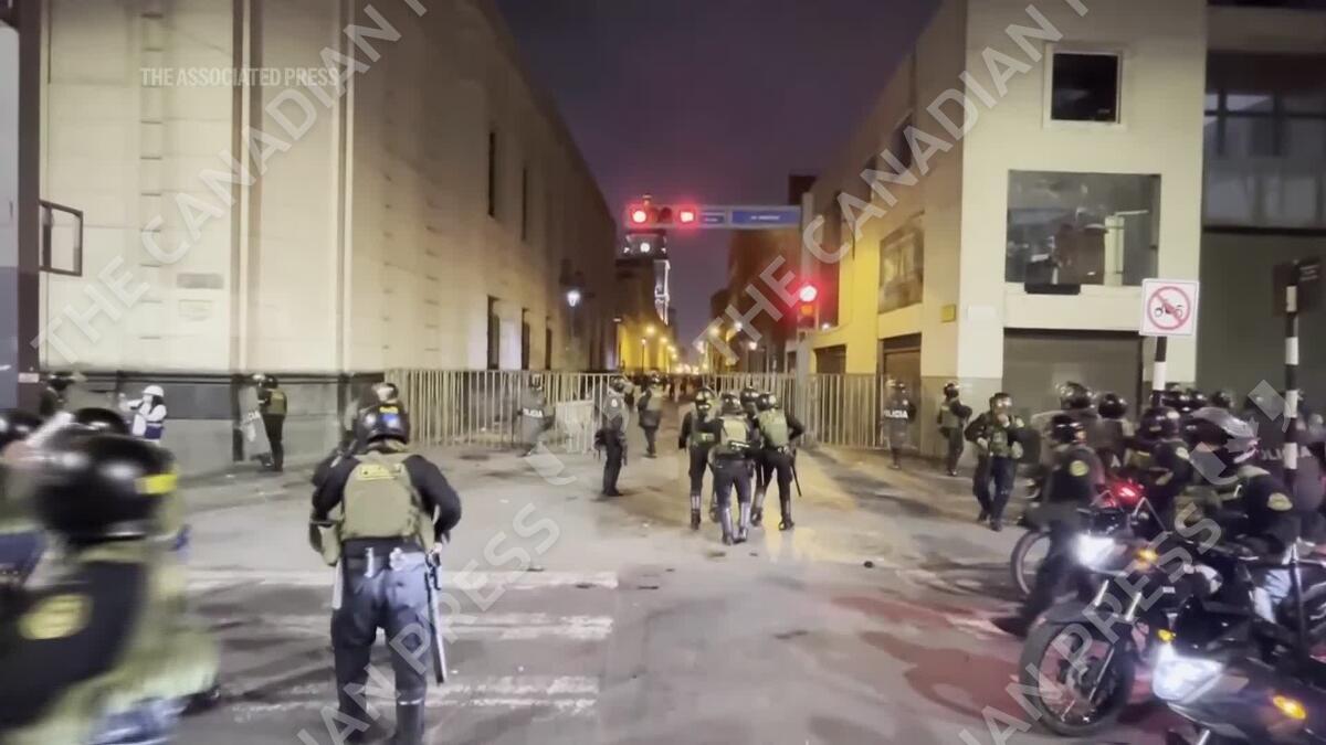 Peruvians took to the streets for a second consecutive day on Sunday to protest against the government of President Dina Boluarte and the Congress. Clashes erupted in Lima late in the evening, with police firing tear gas and demonstrators throwing objects at the forces. (AP Video by Cesar Barreto)