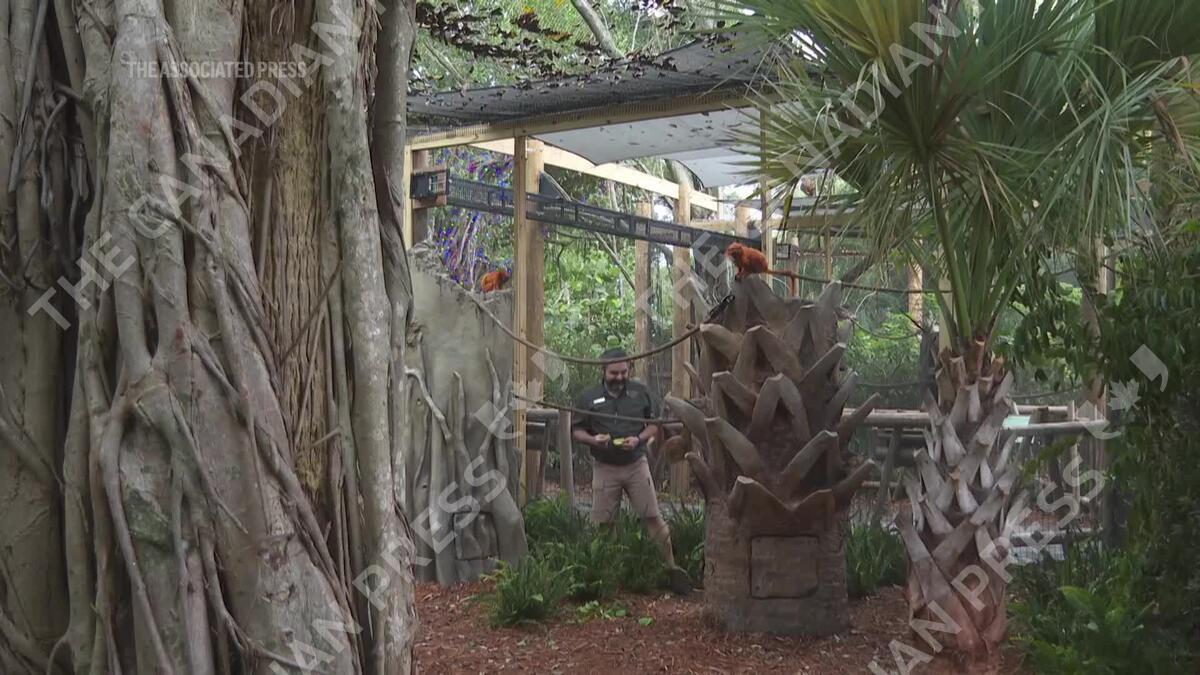 Golden lion tamarins and Hoffman's two-toed sloths have become unlikely roommates in a brand new habitat at the Palm Beach Zoo & Conservation Society in Florida. (AP Video/Cody Jackson)