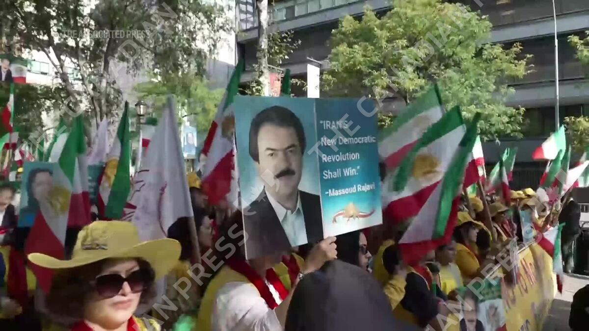 A sea of protesters, chanting and carrying Iranian flags, gathered outside the United Nations General Assembly Tuesday to oppose the Iranian delegation to the U.N. (AP Video: Mary Conlon)
