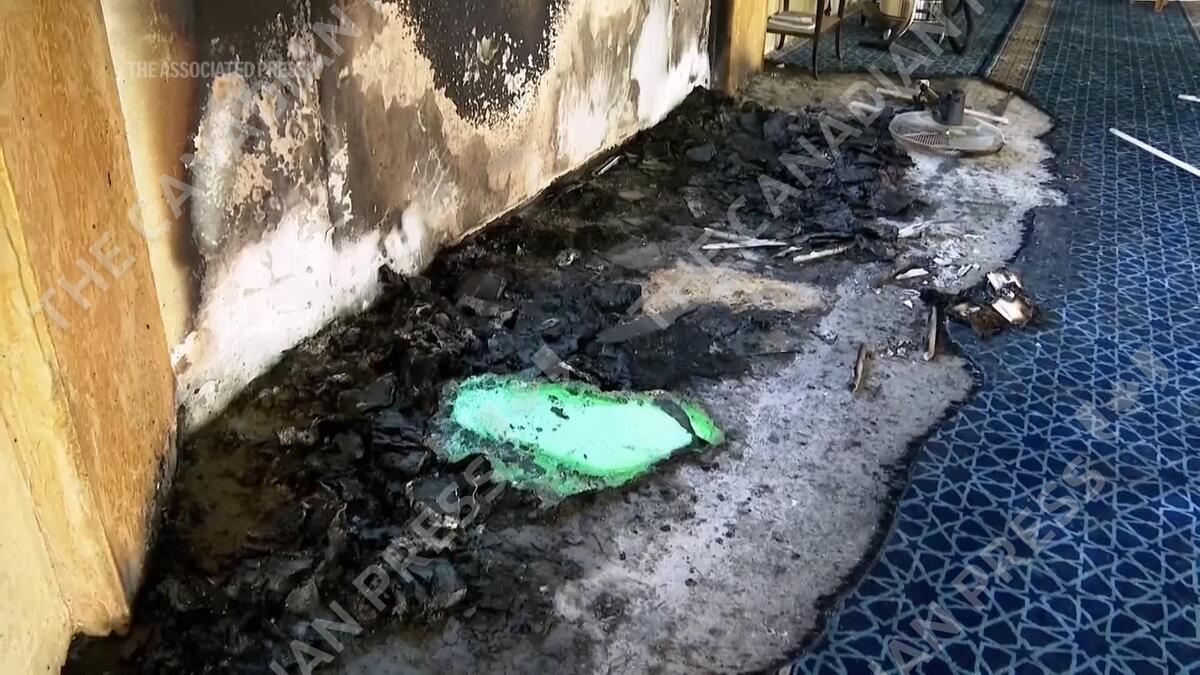 Israeli settlers torched and defaced a mosque in a Palestinian village in the central West Bank early Thursday. One wall of the mosque in Deir Istiya had been torched when an AP reporter arrived Thursday, as well as at least three copies of the Quran and some of the carpeting. (AP video produced by Jalal Bwaitel)