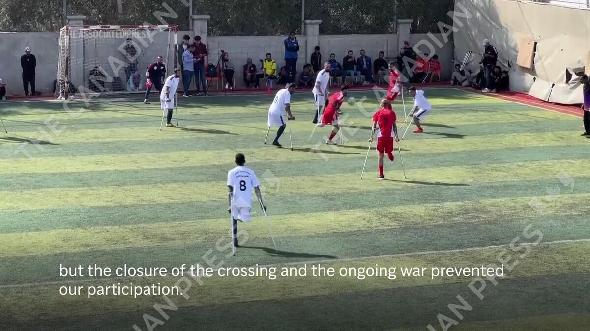 Palestinian football players with limb amputations tucked crutches under their arms and gathered on a field in central Gaza for a tournament organized for amputee athletes. Some of the players lost limbs during the 2018-2019 border demonstrations and others during the recent two-year war with Israel.