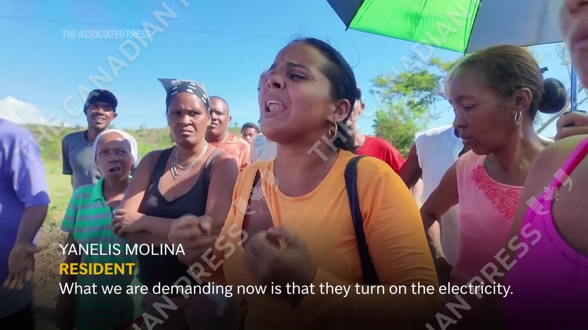 Residents of the town of El Carmen blocked the highway, reporting that they had been without electricity for 22 days since Hurricane Melissa hit Cuba at the end of October. (AP video by Ariel Fernandez and Milexsy Duran)