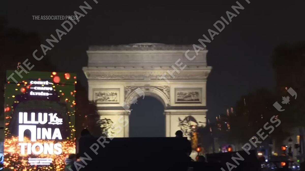 The Christmas lights were switched on Sunday night on Paris' iconic Champs-Elysées. (AP Video: Boubkar Benzabat)