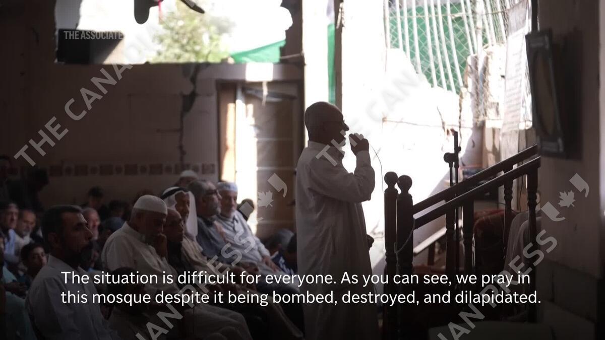 Nearly a month after the ceasefire between Israel and Hamas, worshippers in Nuseirat, central Gaza, gathered inside a mosque that had been bombarded and left in ruins.