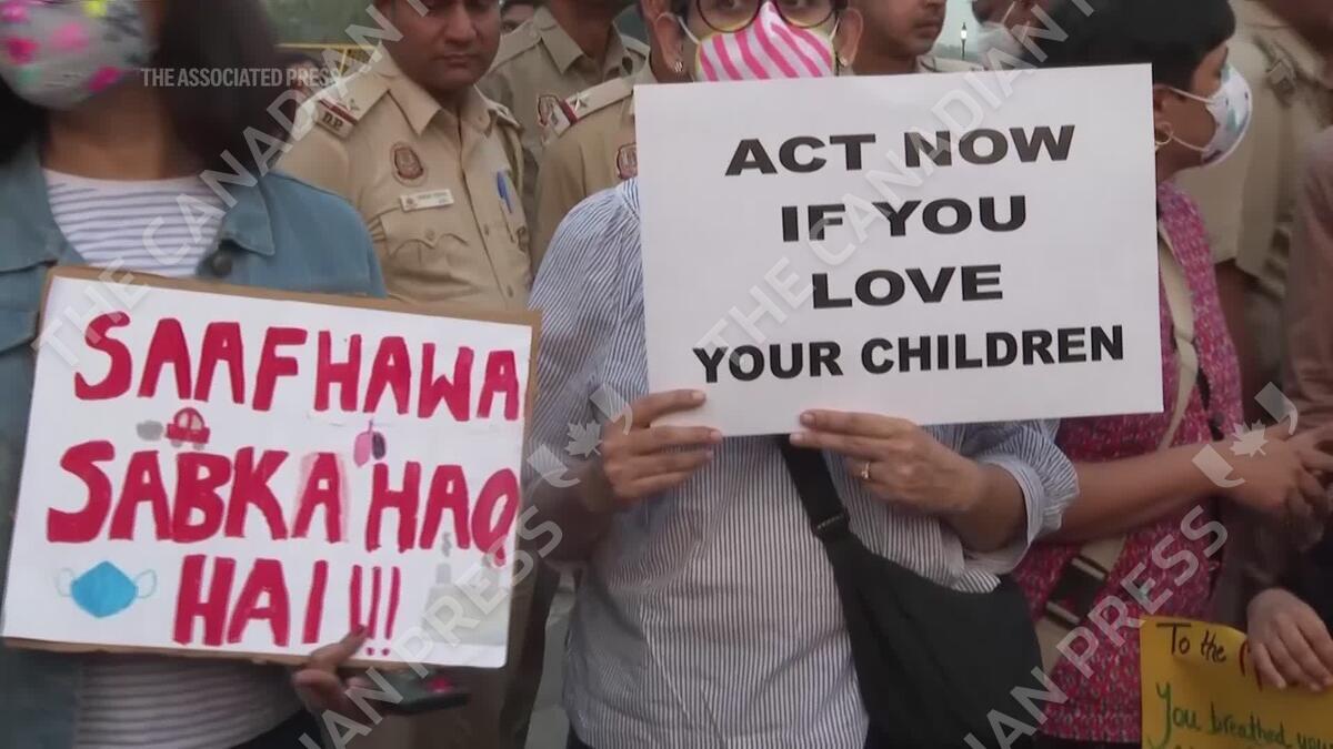 Hundreds of people held a protest in New Delhi on Sunday, demanding authorities take urgent action against the worsening air quality in India's capital. (AP video by Rishi Lekhi)