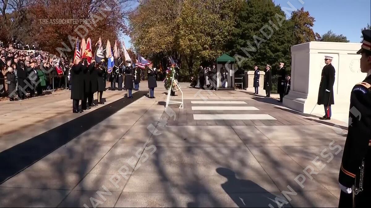 President Donald Trump attends a wreath-laying at Arlington National Cemetery. It's the Republican’s first Veterans Day since he returned to office.