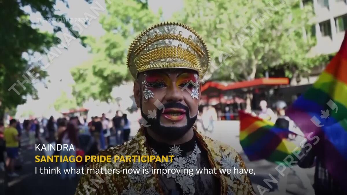 Thousands of people filled the streets of downtown Santiago on Saturday for Chile's annual Pride Parade. Waving multicolored flags in support of sexual diversity rights, they marched and danced their way through the capital. (AP Video shot by Alexandre Plaza)