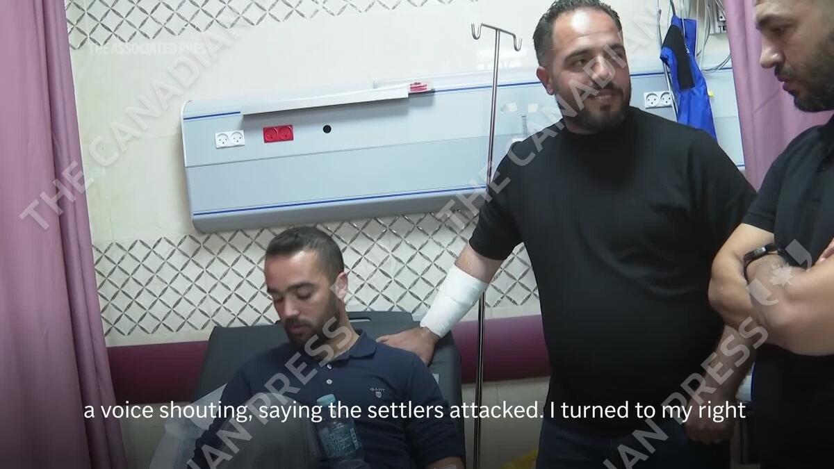 At least 11 people were injured in an attack by Israeli settlers in the occupied West Bank on Saturday, according to Palestinian health officials. Among the wounded were journalists, medics, international activists and farmers. (AP Video by Aref Tufaha)