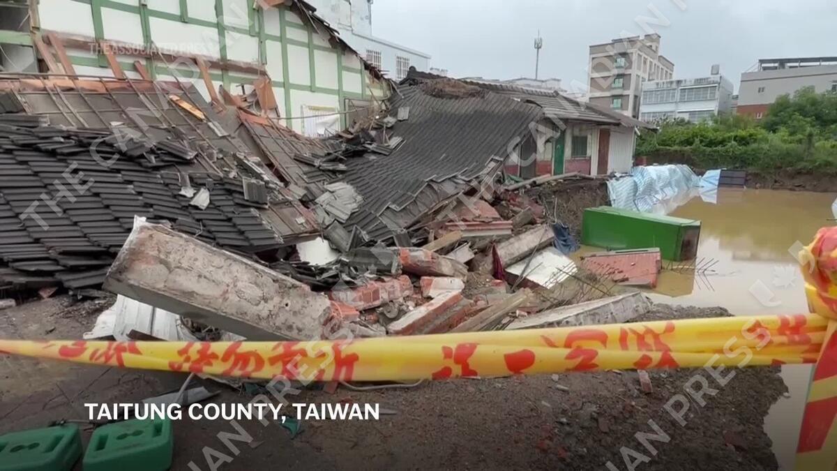 River floods and house collapses in heavy rain as tropical storm nears Taiwan