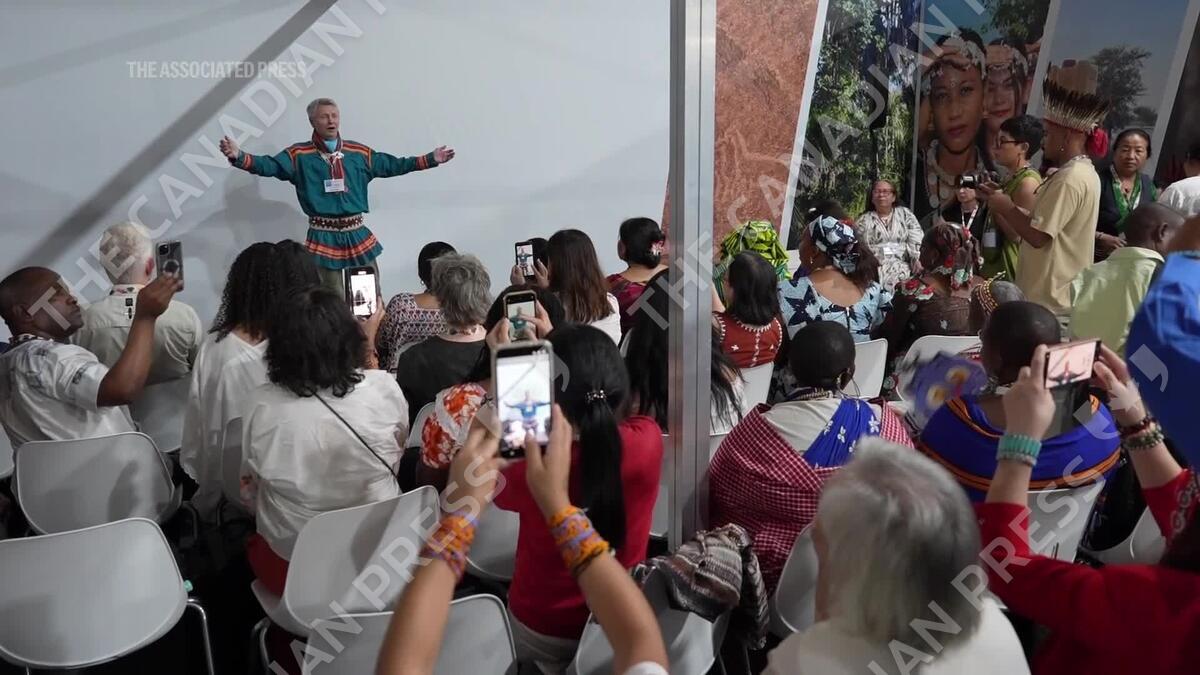 Indigenous people from across the world came to the opening of their pavilion at this year’s UN Climate Change Conference, COP30. The opening ceremony was delayed by a power outage. (AP Video: Joshua A. Bickel/AP Production: Aya Diab)