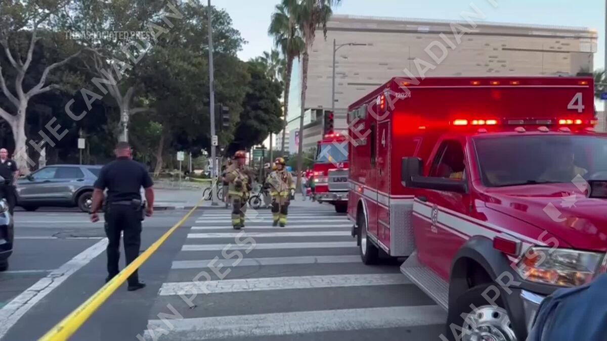 Officials say Los Angeles’s City Hall was evacuated after a car crashed into the steps of the building and the driver has been taken into police custody. (AP video by Jaimie Ding)