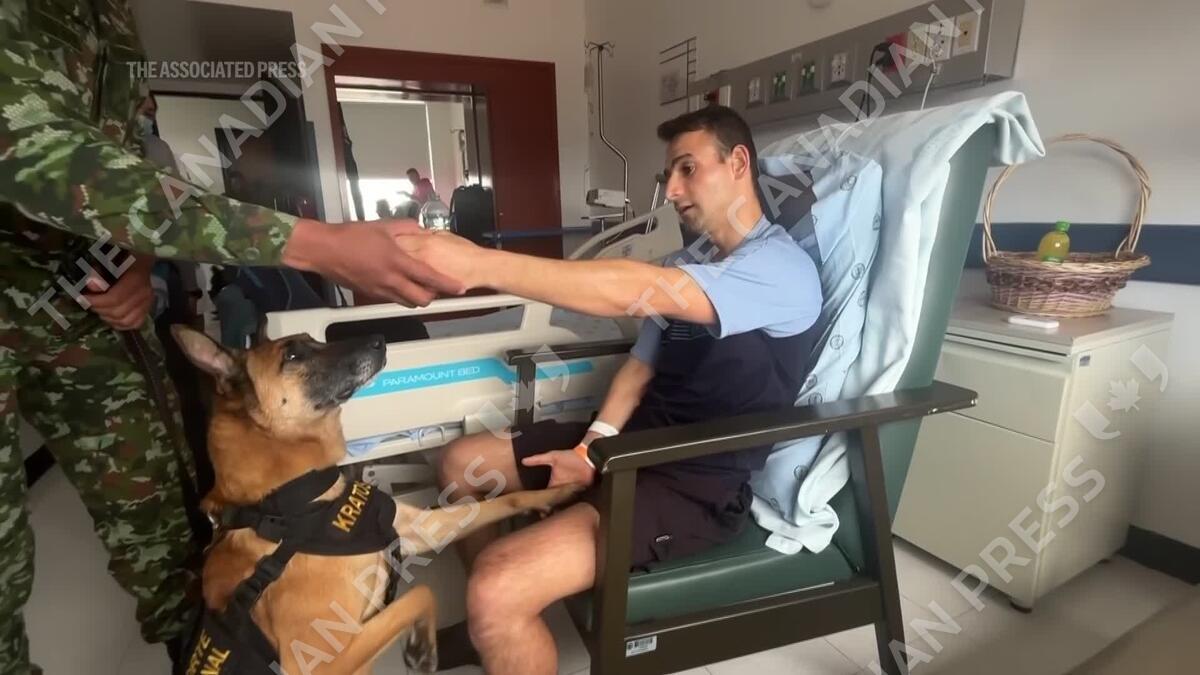 At the Central Military Hospital in Bogota, an unusual unit paw-trols the hallways with a mission unlike any other battalion: lifting the spirits of soldiers wounded in combat. (AP/ Marko Alvarez)