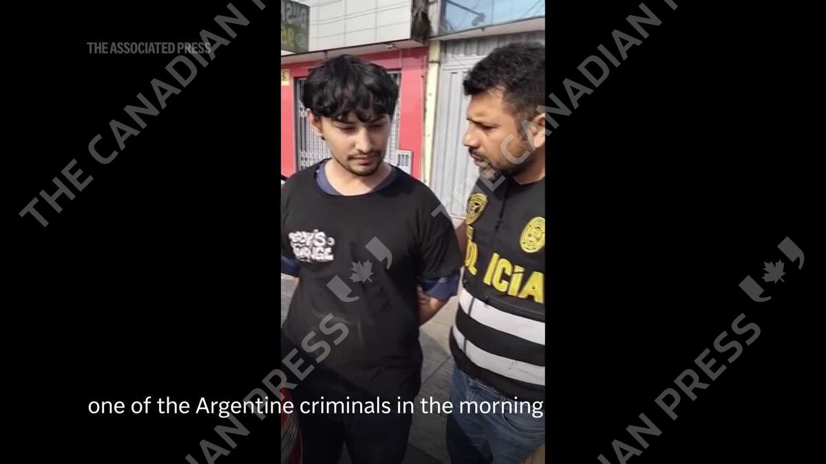 The Peruvian Home Office reported on Tuesday the capture of a Peruvian and an Argentine wanted for the murder of three young women in a Buenos Aires slum, apparently in a settling of scores by a drug gang. (AP Video shot by Mauricio Muñoz and Cristian Kovadloff)
