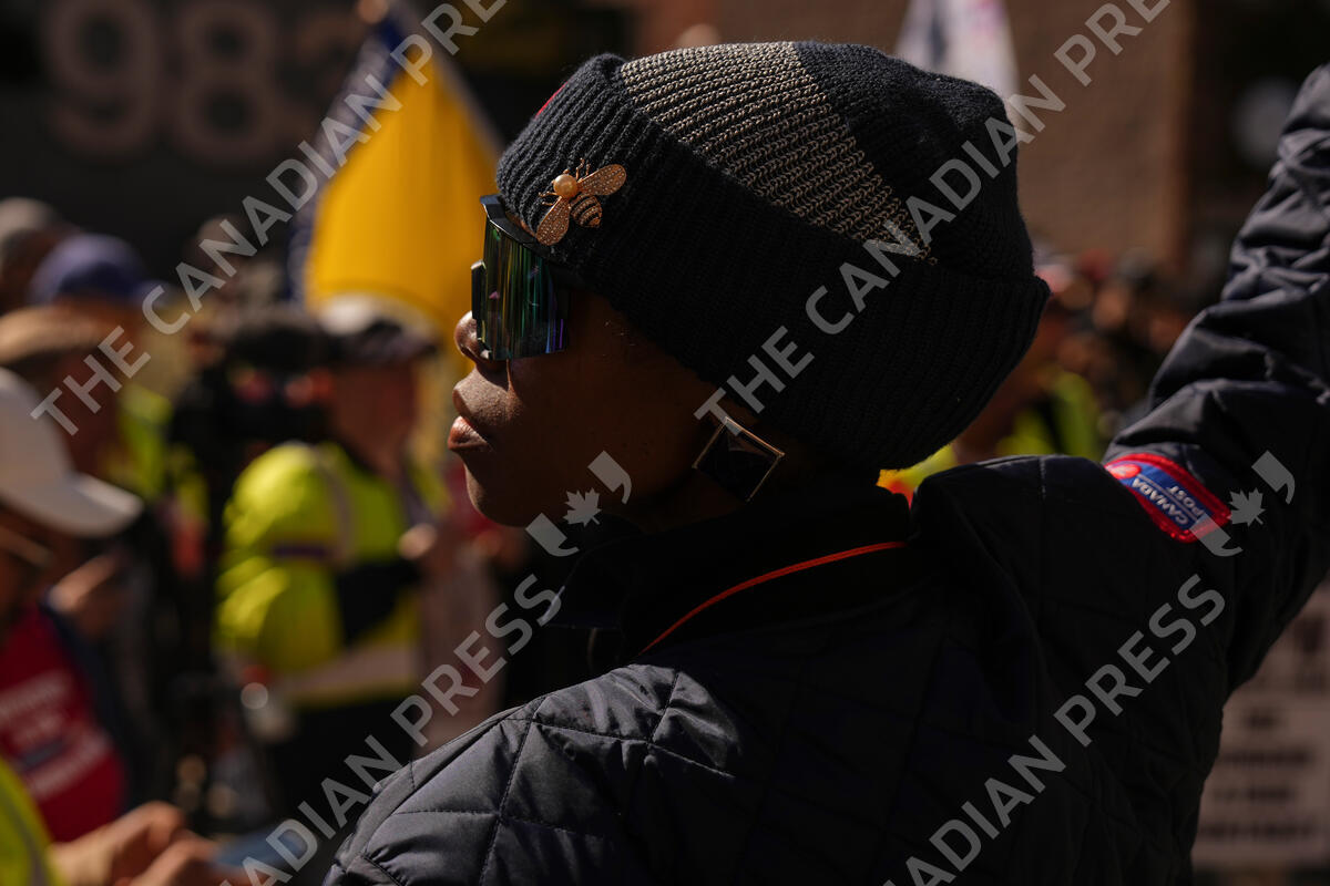 Canada Post workers are joined by CUPE union members as they hold a rally outside MP Julie Dabrusin's office in Toronto on Wednesday, Oct. 1, 2025. THE CANADIAN PRESS/Chris Young