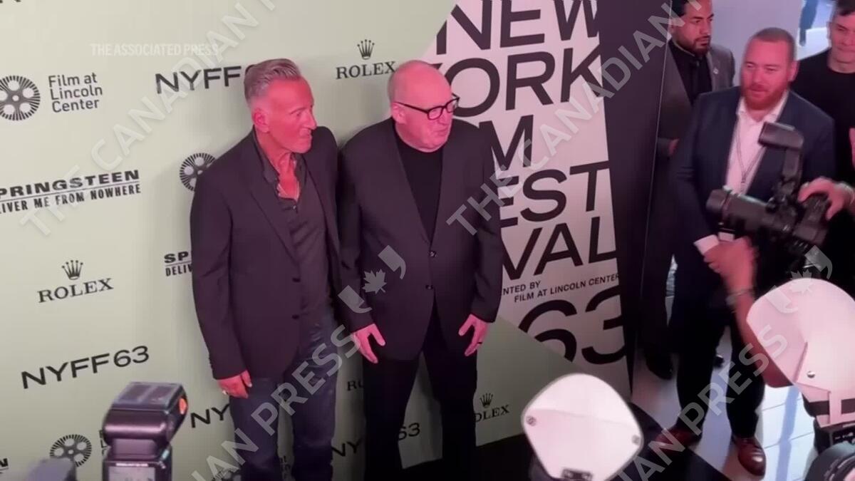 Iconic musician Bruce Springsteen gives a surprise performance of "Land of Hope and Dreams" at the New York Film Festival premiere of "Springsteen: Deliver Me from Nowhere." The film stars Jeremy Allen White at the Boss, as he makes 1982 album "Nebraska." (Sept. 29)