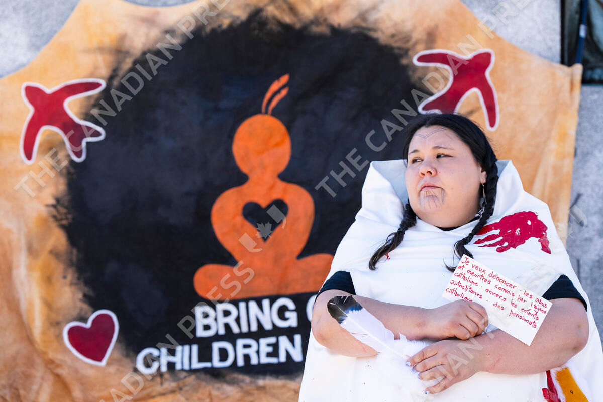 People participate in National Day for Truth and Reconciliation, in Montreal on Tuesday, Sept. 30, 2025. THE CANADIAN PRESS/Christopher Katsarov