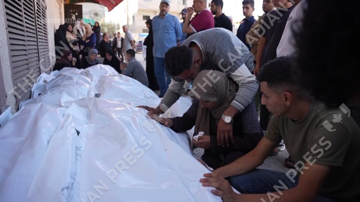CP174619488 | Mourners grieve after Israeli strike on residential building in Gaza's Jabaliya camp kills 14
