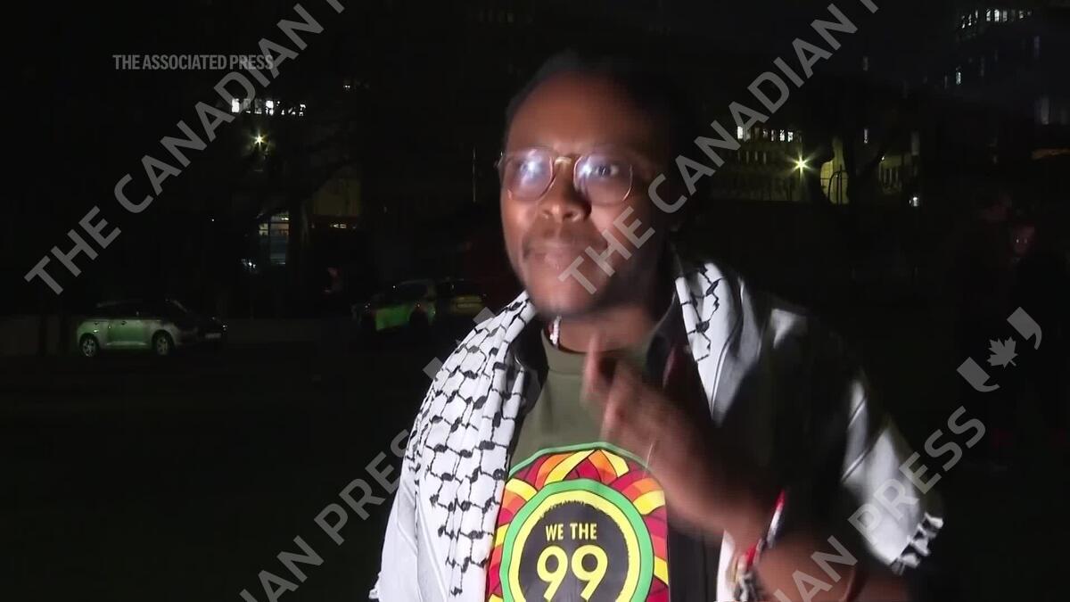 Protesters on Wednesday night projected demands on the side of a building in Johannesburg where world leaders are expected to gather for a G20 summit in South Africa this weekend, calling on those attending to take urgent action on multiple issues. (AP video shot by: Nqobile Ntshangase)