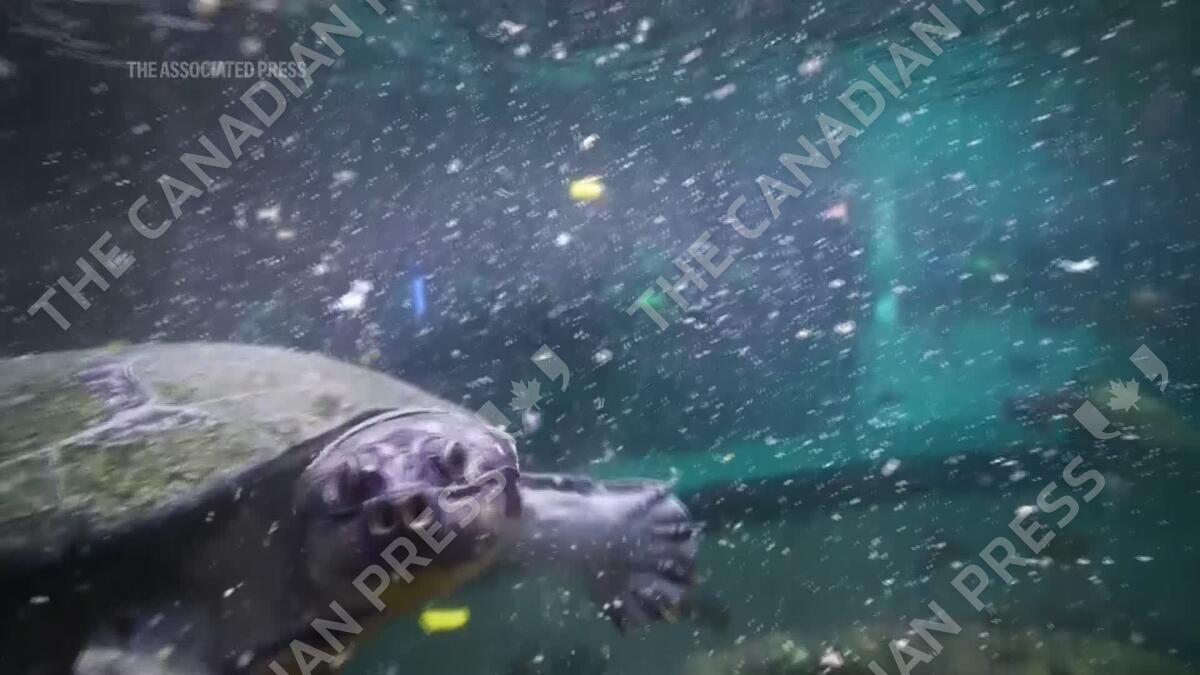 Giant river turtle named Yam enjoys Thanksgiving treat at Chicago's Shedd Aquarium