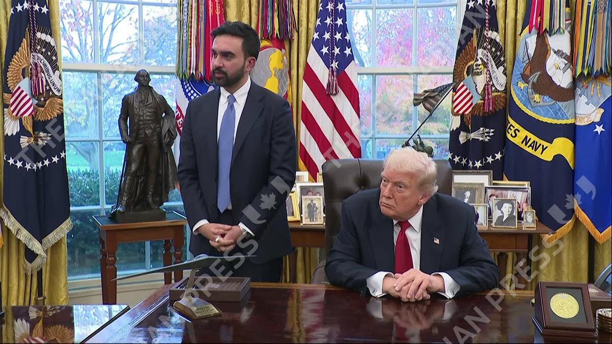 Asked by a journalist about his prior reference to Trump as a "fascist," Mamdani started to respond about how he and the president have differing viewpoints — but Trump interrupted, and said it was OK for him to just acknowledge it.