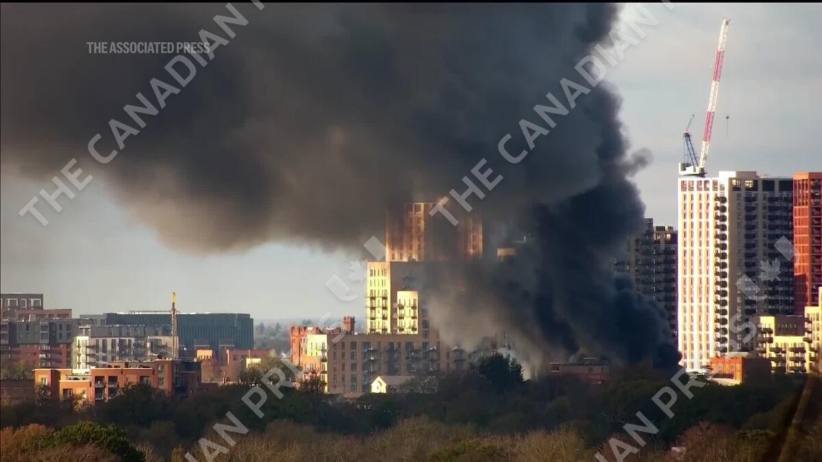 CP172968539 | Fire engulfs apartment building in east London, sending at least 2 to hospital
