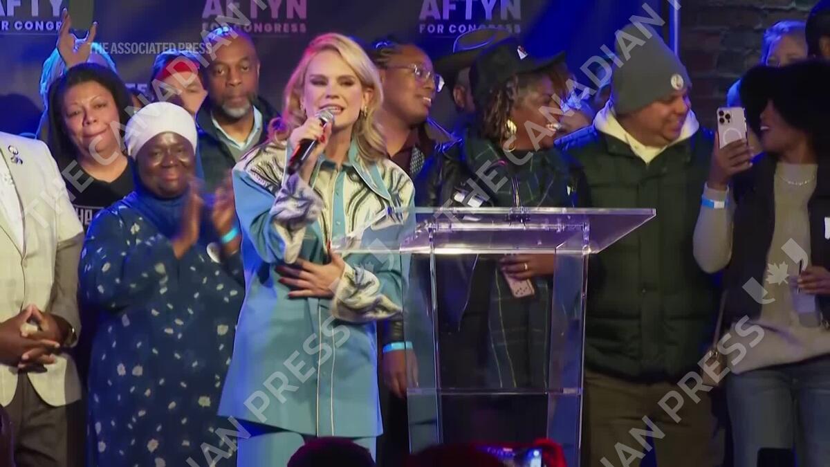 Democratic Congressional Candidate Aftyn Behn took the stage at her campaign gathering after losing the Tennessee special election to Republican candidate Van Epps. (AP video by Kristin Hall)