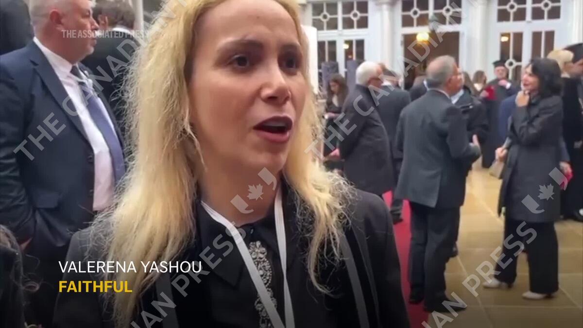 Painter Valerena Yashou presented Pope Leo XIV with a portrait of him as he departed the patriarchal church of Saint George on Saturday.