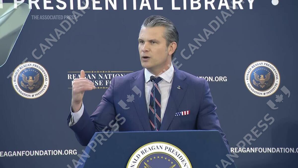 Defense Secretary Pete Hegseth defended strikes on alleged drug cartel boats during remarks Saturday at the Ronald Reagan Presidential Library, saying President Donald Trump has the power to take military action “as he sees fit” to defend the nation.