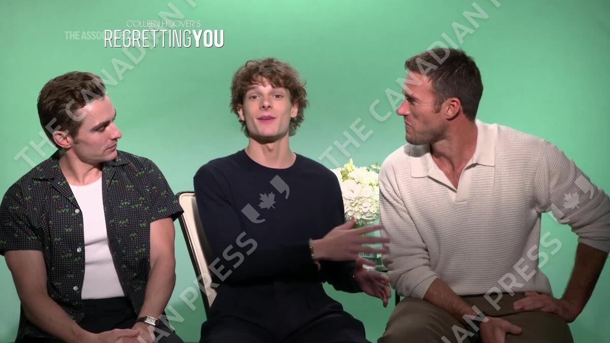 Dave Franco, Mason Thames and Scott Eastwood, co-stars of the new film "Regretting You," a Colleen Hoover adaptation, chat about shirtless scenes and watching Eastwood's Taylor Swift music video on set. (Oct. 22)