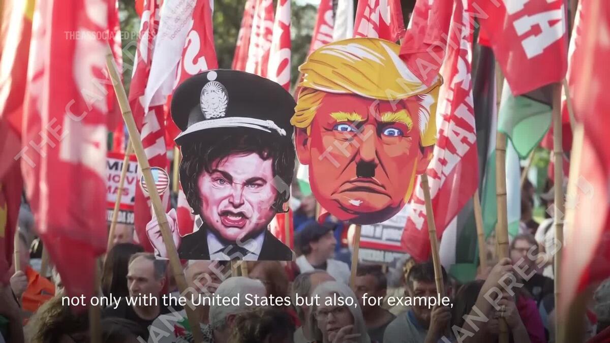 Opposition groups demonstrated Wednesday against the policies of Argentine president Javier Milei and his new economic agreement with the United States. (AP/ Victor R. Caivano)