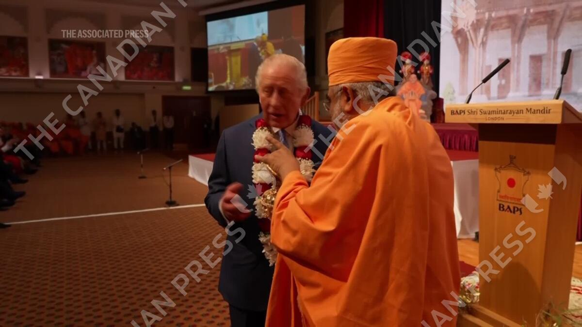 King Charles III and Queen Camilla wished worshippers a belated “happy Diwali” as they visited a landmark Hindu temple in west London to mark its 30th anniversary on Wednesday.
