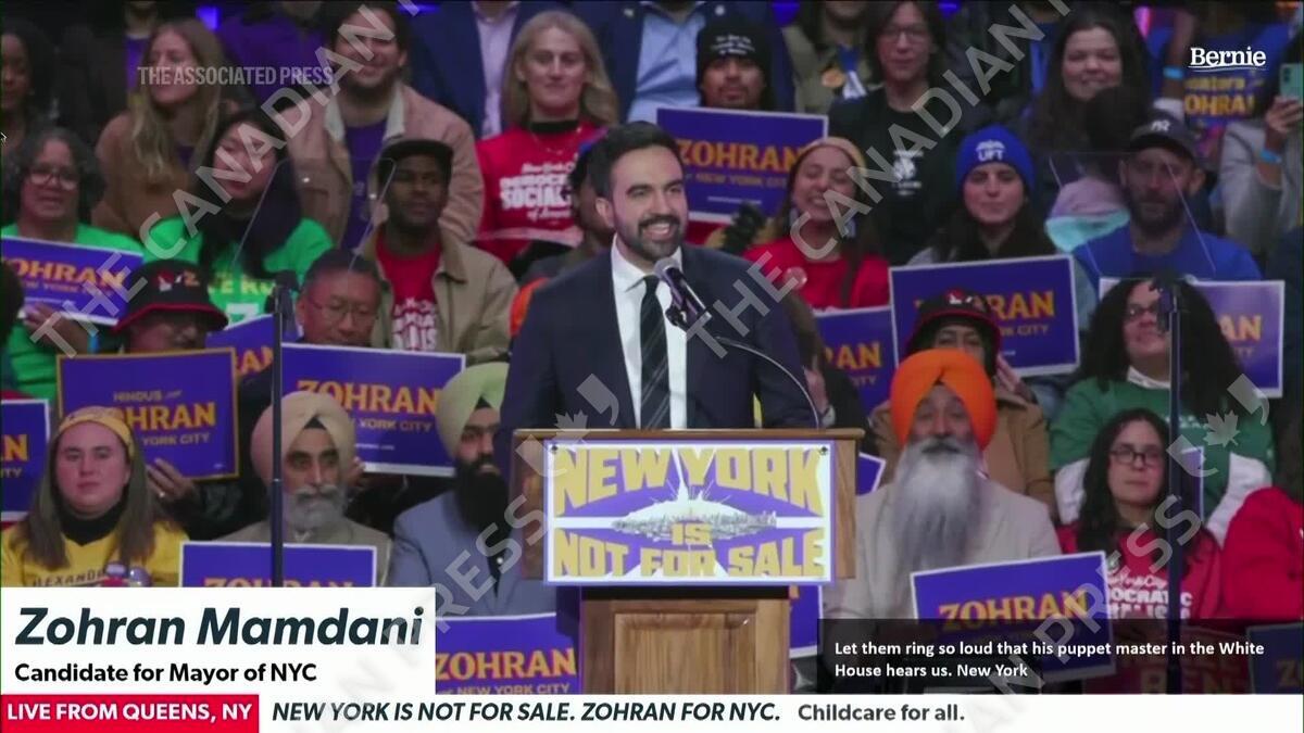 New York mayoral candidate Zohran Mamdani rallied supporters Sunday with heavyweight support from U.S. Sen. Bernie Sanders and Rep. Alexandria Ocasio-Cortez as the race enters its final stretch, telling a raucous crowd that "New York is not for sale."