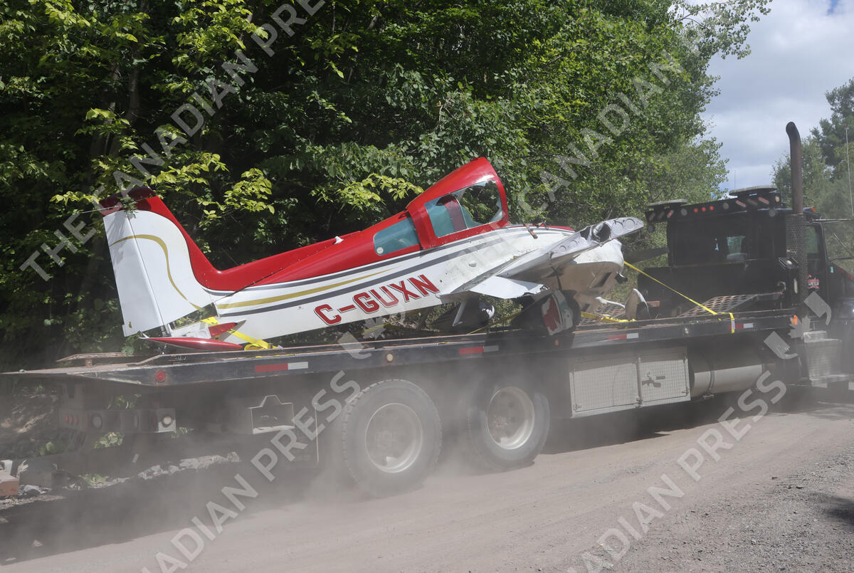 The wreckage of a small plane that crashed on Thursday, July 31, 2025, near the Ottawa International Airport, is removed from the crash site on Friday, Aug. 1, 2025. THE CANADIAN PRESS/Patrick Doyle