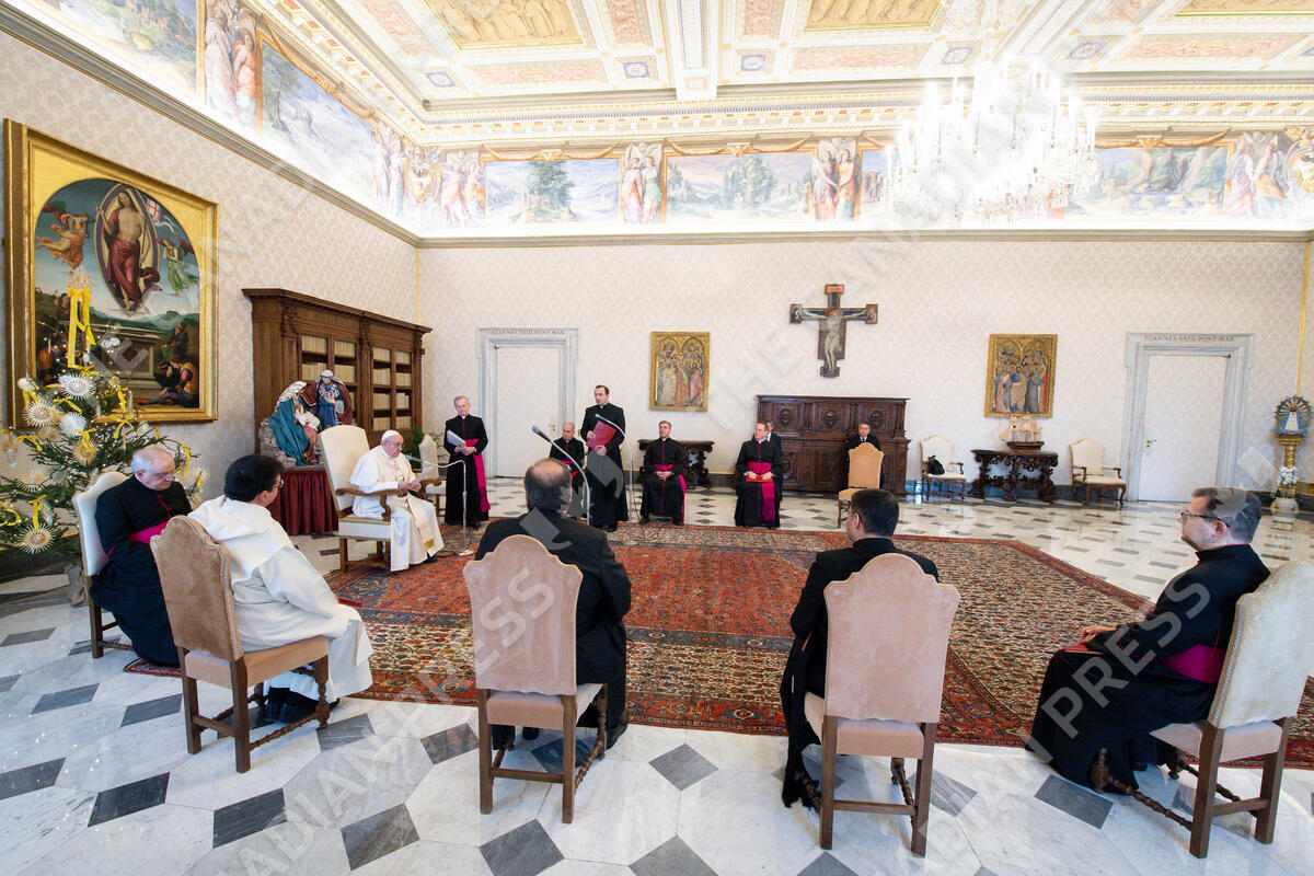Pope Francis during the weekly general audience with the crib in Apostolic Palace, at the Vatican on December 30, 2020. Photo by Vatican Media/CPP/IPA/ABACAPRESS.COM