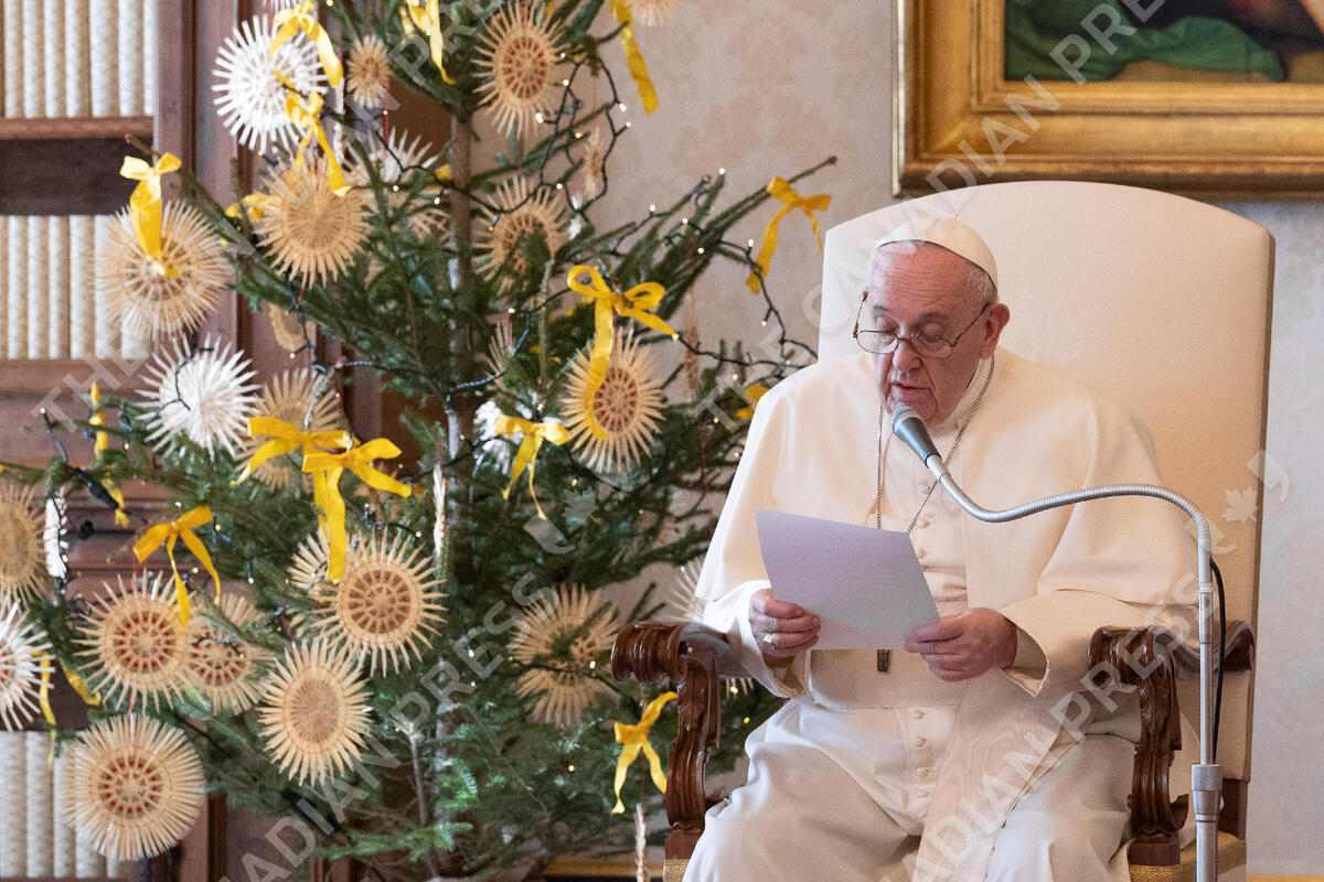 Pope Francis during the weekly general audience with the crib in Apostolic Palace, at the Vatican on December 30, 2020. Photo by Vatican Media/CPP/IPA/ABACAPRESS.COM