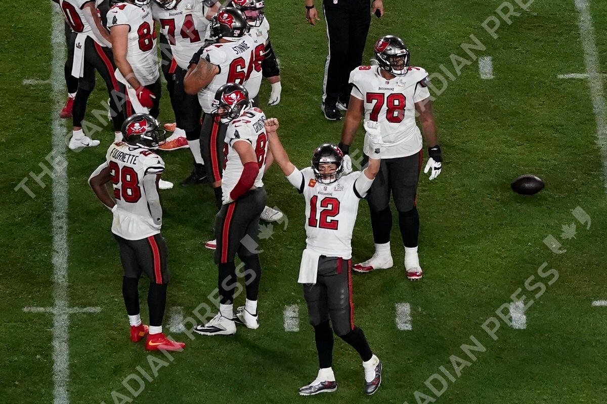 Tampa Bay Buccaneers quarterback Tom Brady (12) celebrates during the second half of the NFL Super Bowl 55 football game against the Kansas City Chiefs Sunday, Feb. 7, 2021, in Tampa, Fla. (AP Photo/Chris Carlson)