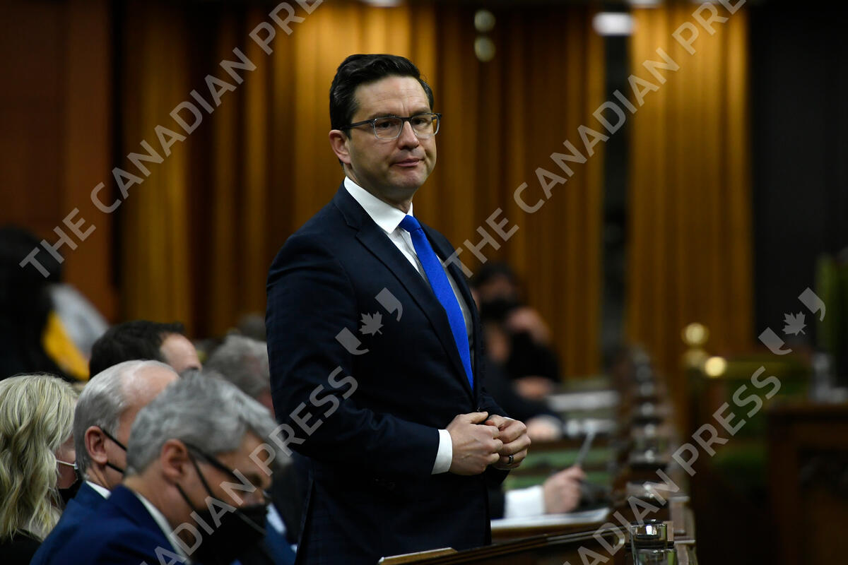 Conservative MP Pierre Poilievre rises during Question Period in the House of Commons on Parliament Hill in Ottawa on Monday, Jan. 31, 2022. THE CANADIAN PRESS/Justin Tang