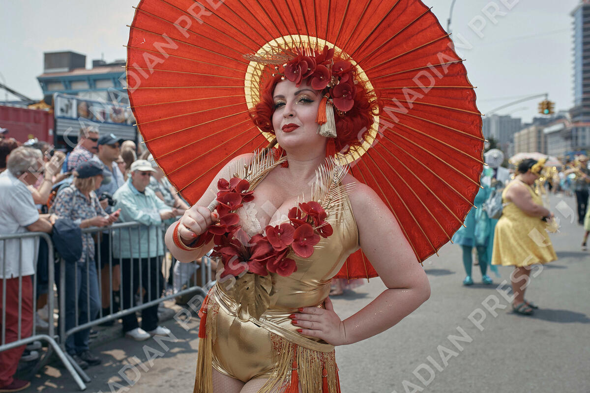 A reveler stands for a portrait during the Mermaid Parade in the Coney Island section of the Brooklyn borough of New York, Saturday, June 17, 2023. (AP Photo/Andres Kudacki)