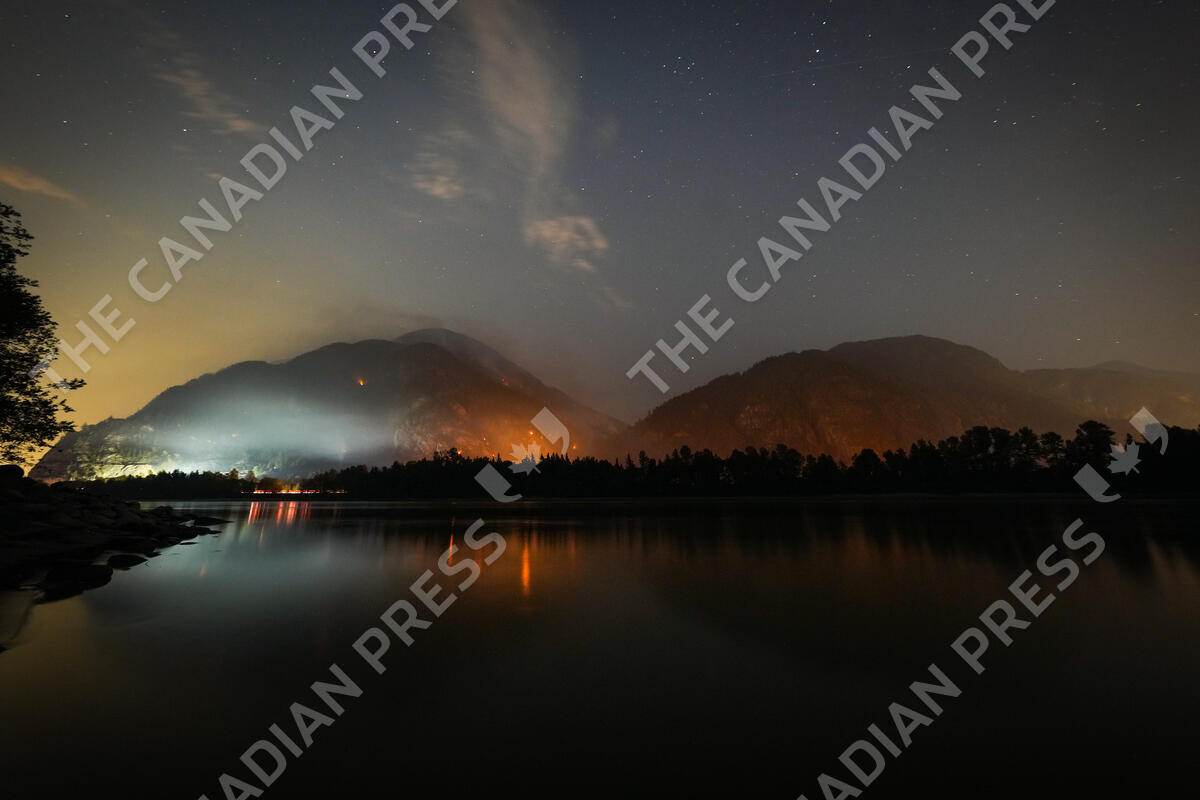 The Flood Falls Trail wildfire burns above the Fraser River in Hope, B.C., Monday, Sept. 12, 2022. THE CANADIAN PRESS/Darryl Dyck