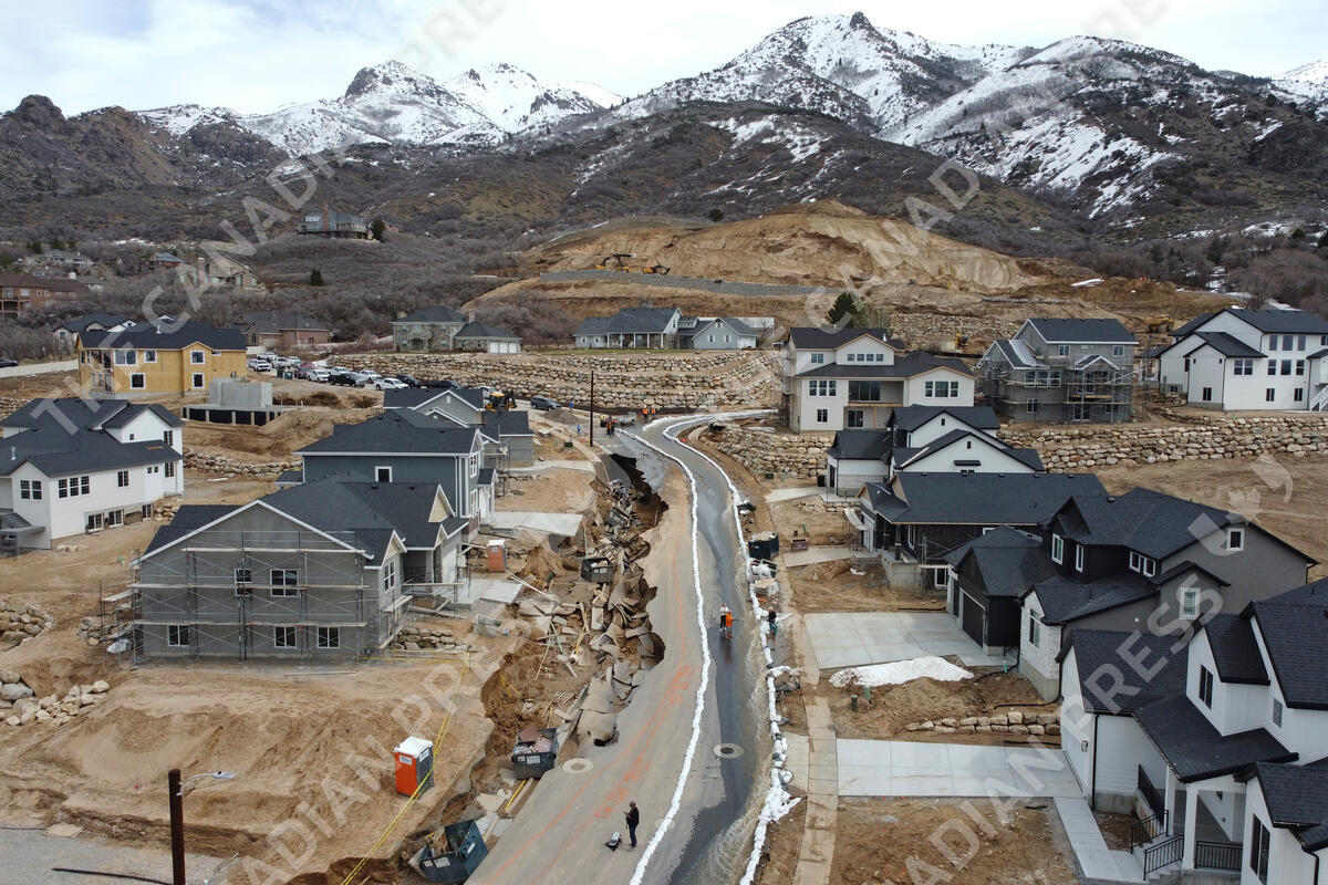 Local officials issued evacuation orders for at least 20 homes as temperatures spiked and snowmelt coursed through the streets on Wednesday, April 12, 2023, in Kaysville, Utah. A record-breaking snow season has raised fears of spring flooding throughout Utah as the weather in mountain regions warms. (AP Photo/Rick Bowmer)