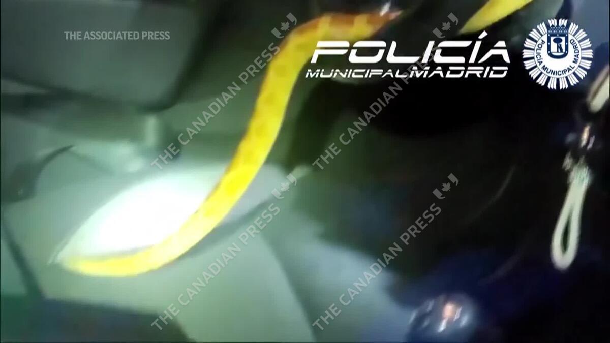 Police in Madrid, Spain, found a corn snake - a harmless, constricting serpent often kept as a pet - moving over the dashboard of a parked car. (Mar. 18)
