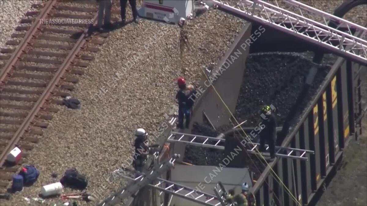A worker was rescued after being trapped for hours in a coal-filled train car in Bridgewater, Massachusetts on Tuesday.