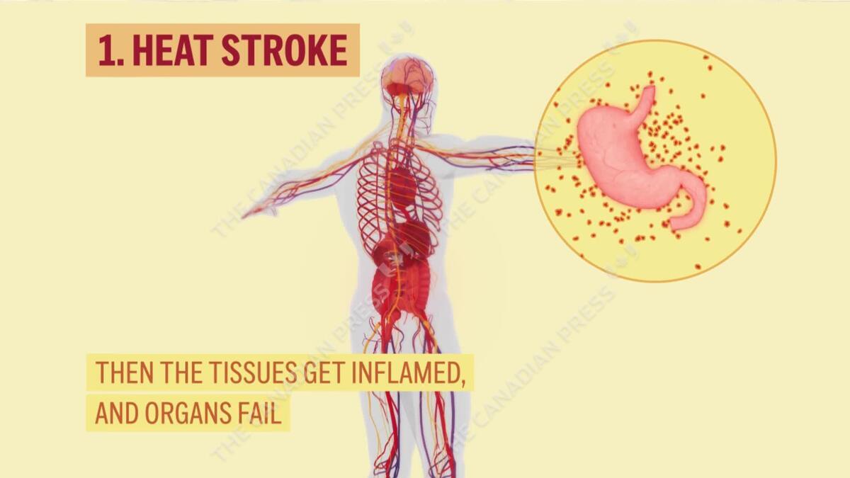 The average human body temperature is 98.6 degrees or 37 Celsius. That’s only 7 degrees Fahrenheit - or 4 Celsius - away from catastrophic damage. (AP Video: Donavon Brutus)