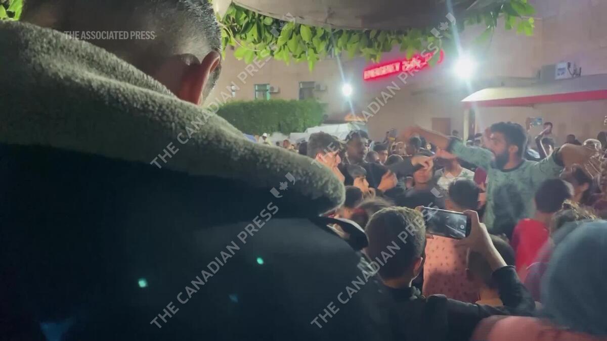 Celebrations outside Al Aqsa Hospital in Deir al-Balah after Hamas accepts cease-fire proposal